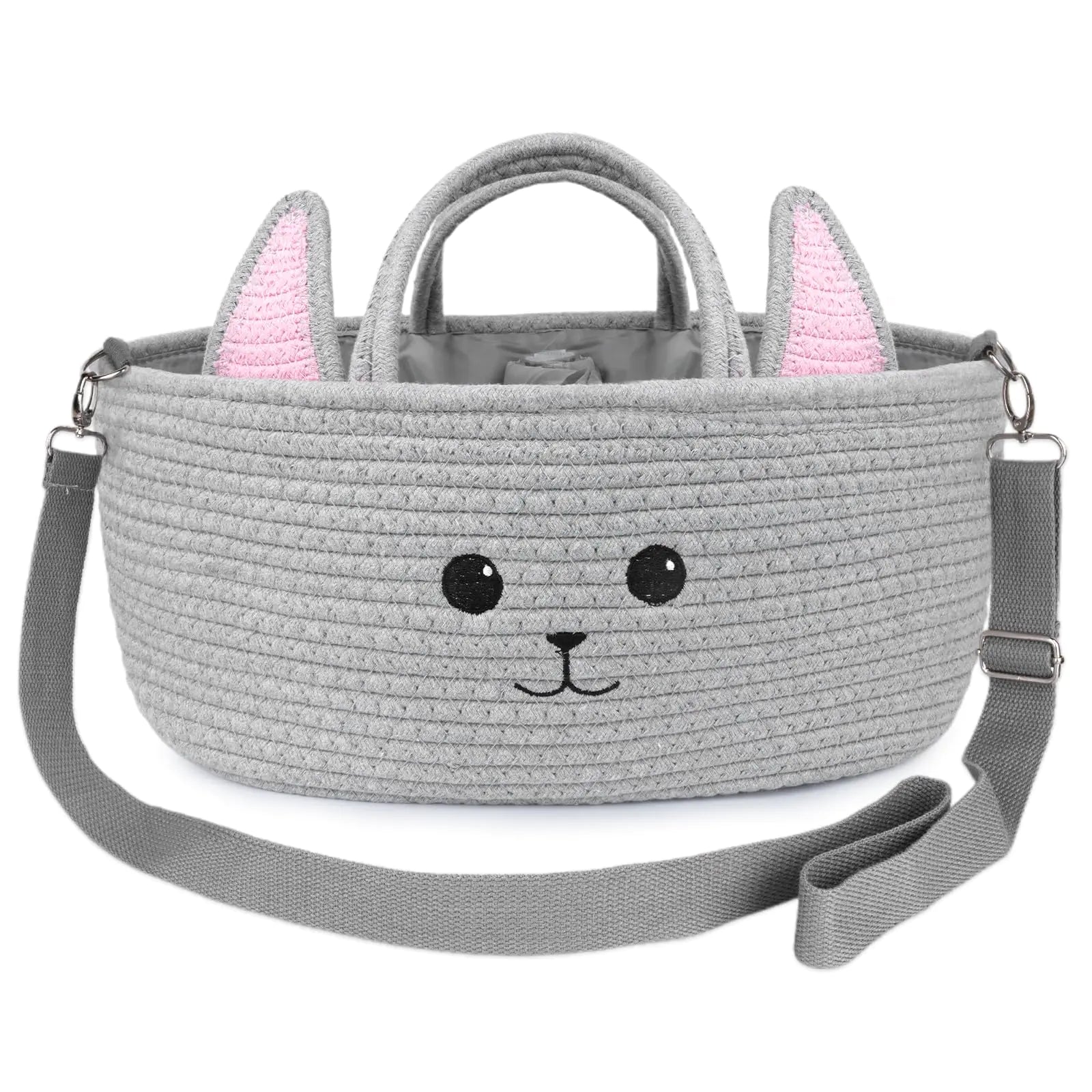 LSYDCARM Baby Diaper Caddy Organizer Cute Cat Woven Cotton Rope Nursery Storage Basket Portable Diaper Organizer for Changing Table Baby Stuff Car Travel Baby Shower Gifts for Newborn